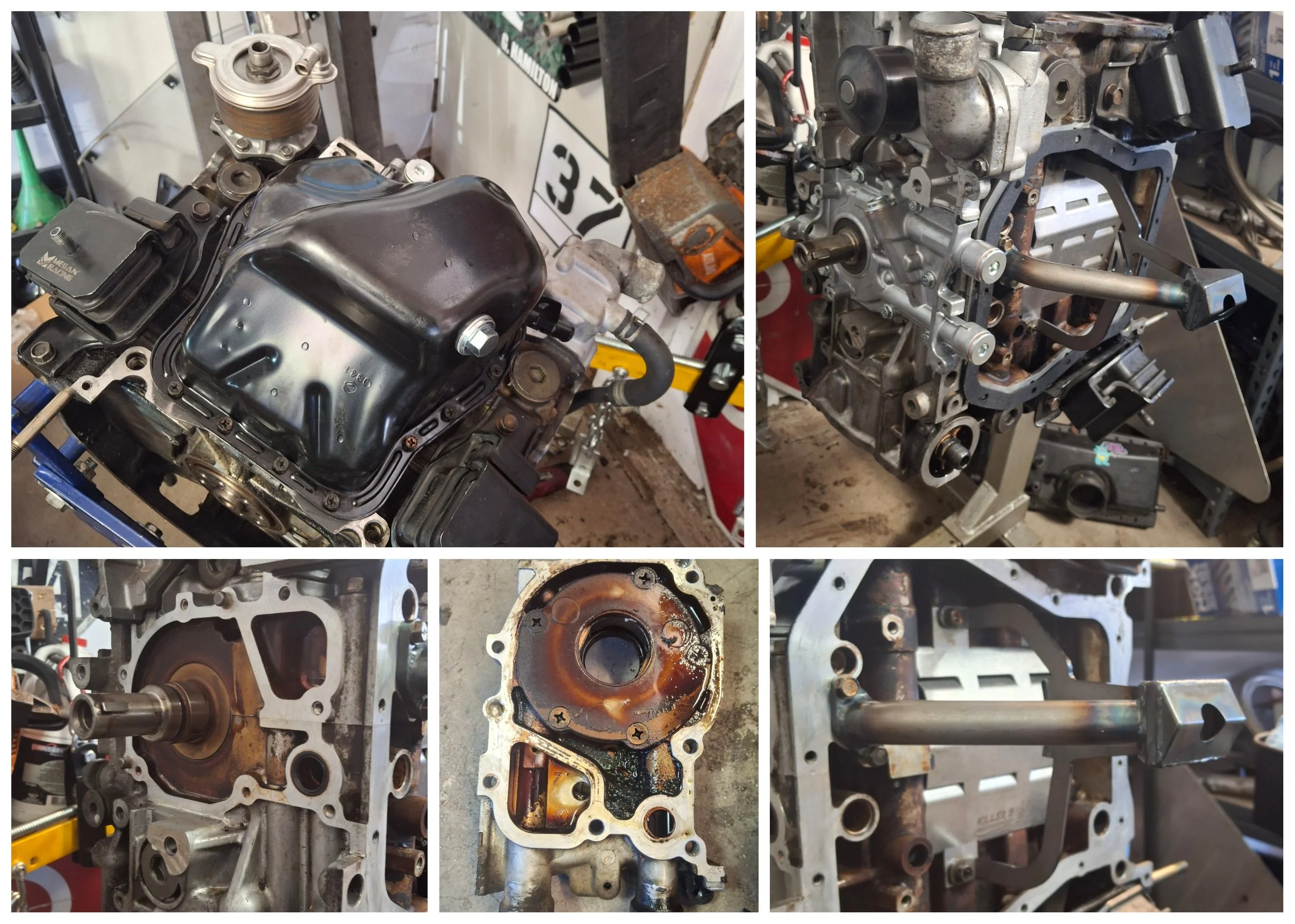 First time ever building a junkyard engine. Looks clean, passes the bearings test, doesn’t matter I am phoning a friend. Got a 2nd opinion and we are going to send it. Both my daughters have interests in racing RallyCross, AutoCross, and Time Trials… time to beef up the oiling. Installed a Killer B Motorsports baffle, oil pick-up, as well as an oil cooler, and swapping to a 06 WRX pan to fit it all. Don’t ask, learned the hard way that’s just how you have to make it all fit.